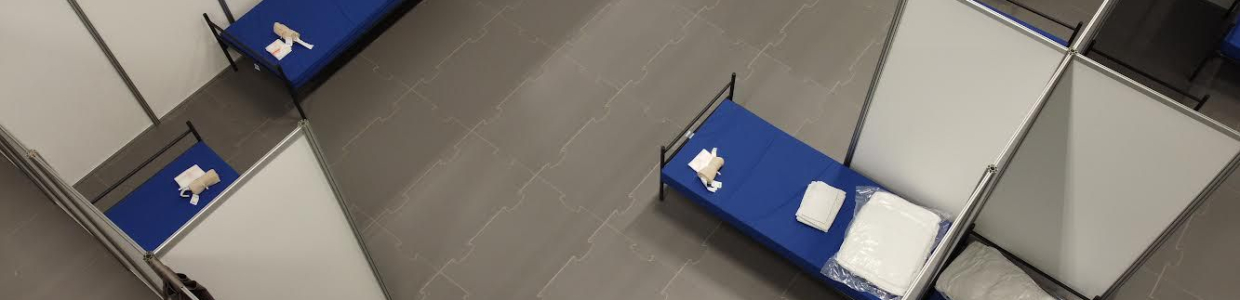 Omdat het aanmeldcentrum in Ter Apel uit zijn voegen barst heeft het kabinet een oproep gedaan aan alle veiligheidsregio’s om plekken voor noodopvang in te richten. De gemeente Utrecht heeft hiervoor de sporthal Hoograven omgebouwd tot tijdelijke opvanglocatie. Om de sportvloer te beschermen hebben we deze voorzien van onze Eventvloer – sportvloerbescherming. Ook is er een horecagelegenheid ingericht in een naastgelegen dansschool welke wij hebben voorzien van een beschermvloer en wandbescherming.
